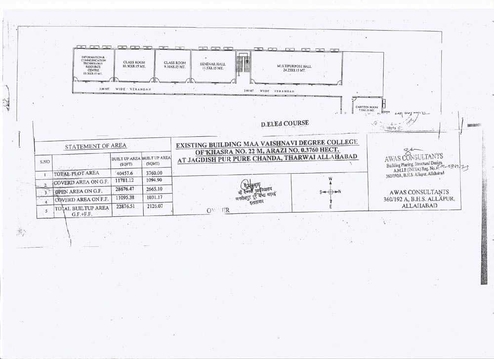 EXISTING MAA VAISHNAVI DEGREE COLLEGE OF KHASRA No. 203, 301, 89, 201/214 AT- THARWAI ALLAHABAD |